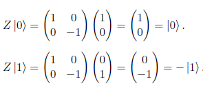 When a gate U acts on a state |ψ⟩, the output state is |ψ′⟩ = U |ψ⟩. Written as column vectors in the {|0⟩ , |1⟩} basis:
