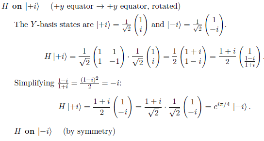 H |−i⟩ = e−iπ/4 |+i⟩ .
