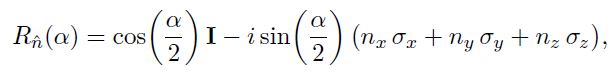 where σx, σy, and σz are the Pauli matrices. Because gates are rotations, they can never move a pure state off the surface of the Bloch sphere.